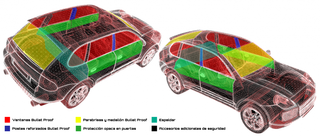 Blindaje Anti-Asalto I + Protección de los demás vidrios del automóvil.